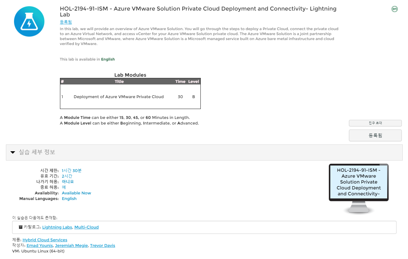 VMware Hands-on Lab에 Azure VMware Solutions에 대한 링크를 모아봅니다.