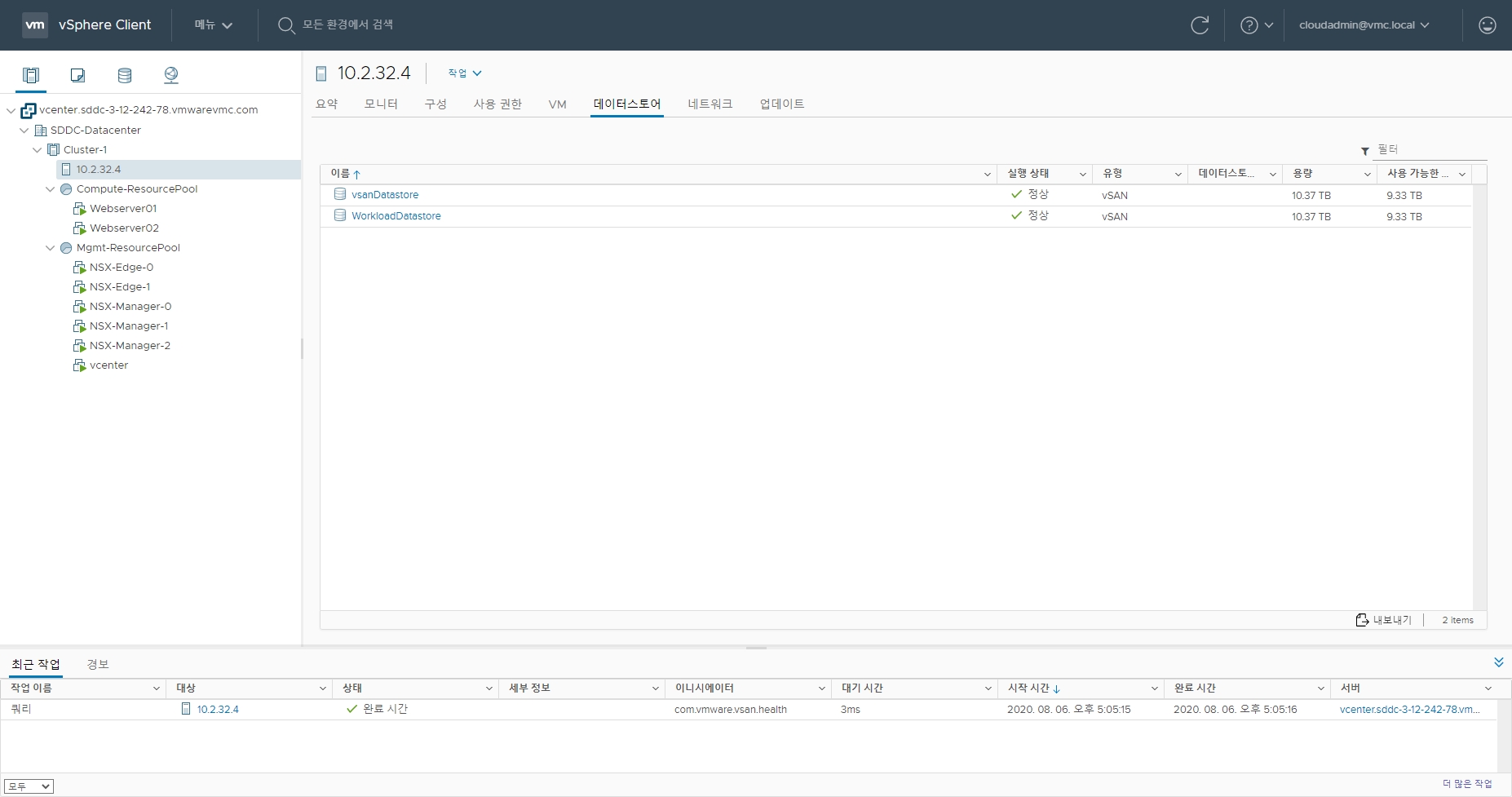 - WorkloadDatastore : 사용자 VM이 사용하는 전용 스토리지 공간, 사용자 제어 가능