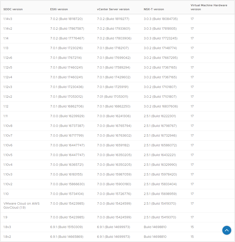 각 SDDC 버전에 따라 아래 정보가 업데이트 되고 있음을 확인할 수 있습니다.
