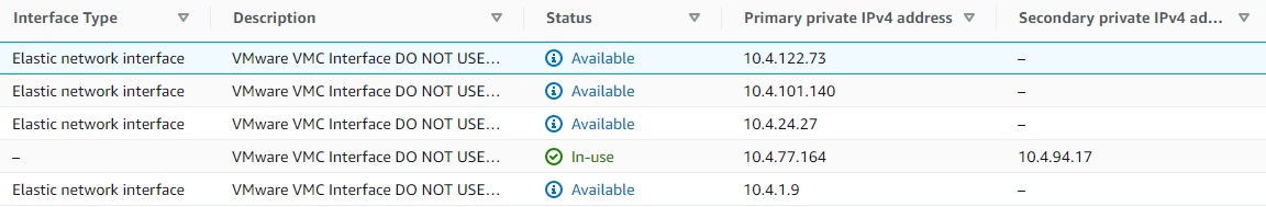생성된 ENI의 Description에는 'VMware VMC Interface DO NOT USE'라고 표기되어 있으며,