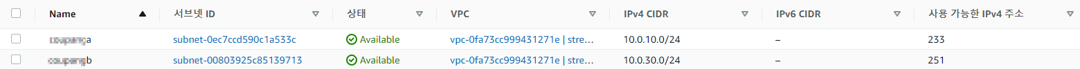 | 사용 가능한 IPv4 주소 | 233 | 251 |