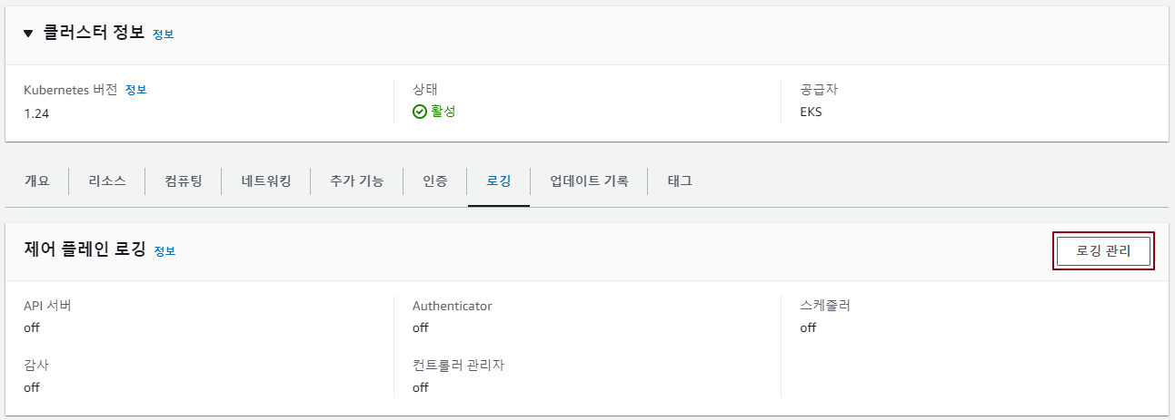 컨트롤플레인에 대한 로깅을 활성화하여 사용자의 cloudwatch를 통해 확인할 수 있는 기능을 제공하고 있습니다.