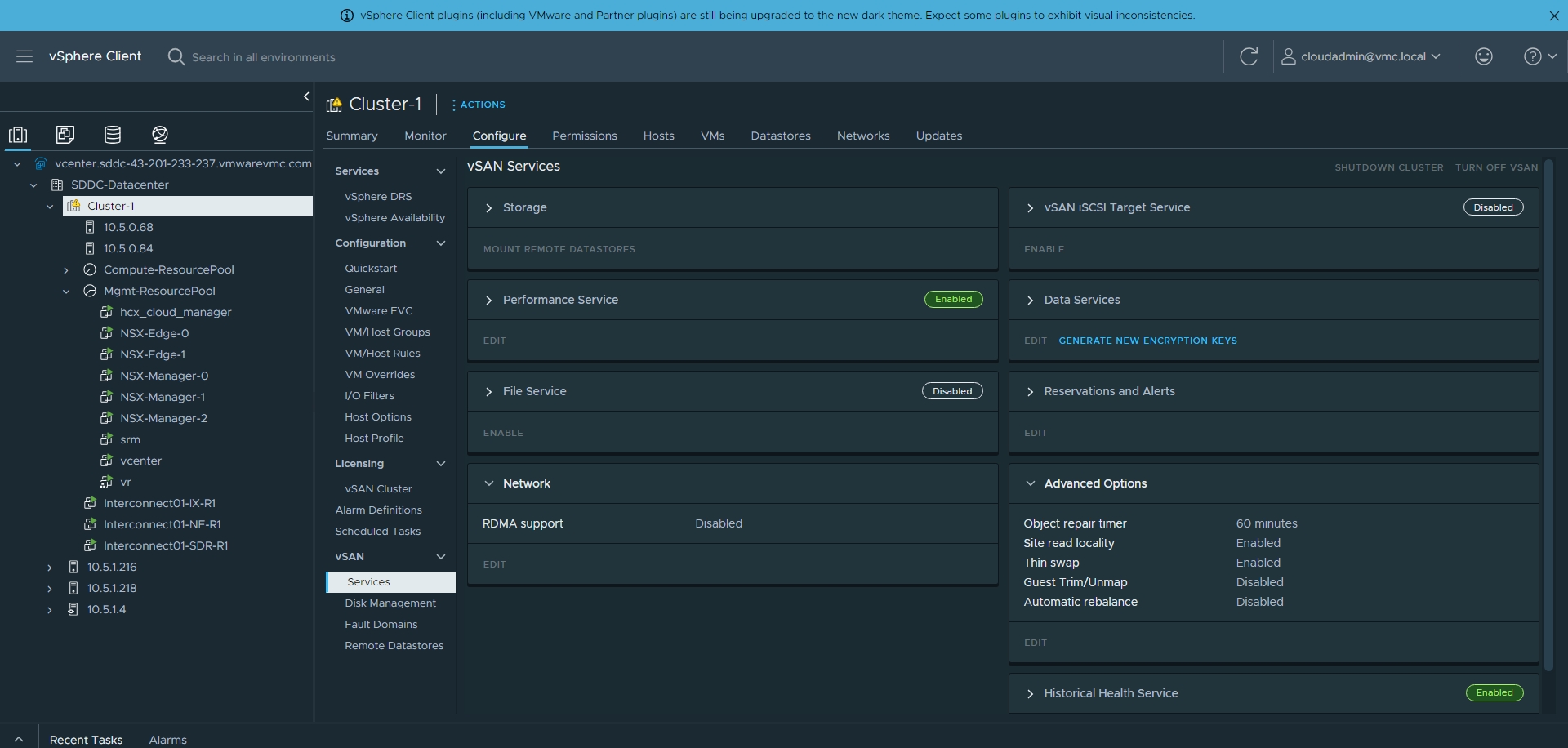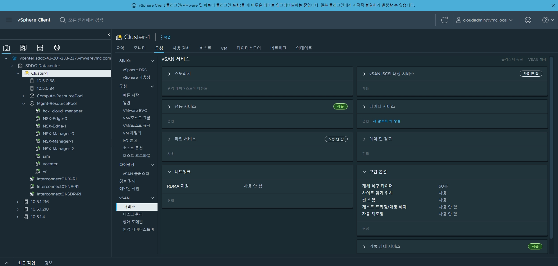 - 한글 브라우저 : Cluster-1 > 구성 > vSAN 서비스 > 고급 옵션 > 게스트 트리밍/매핑 해제
