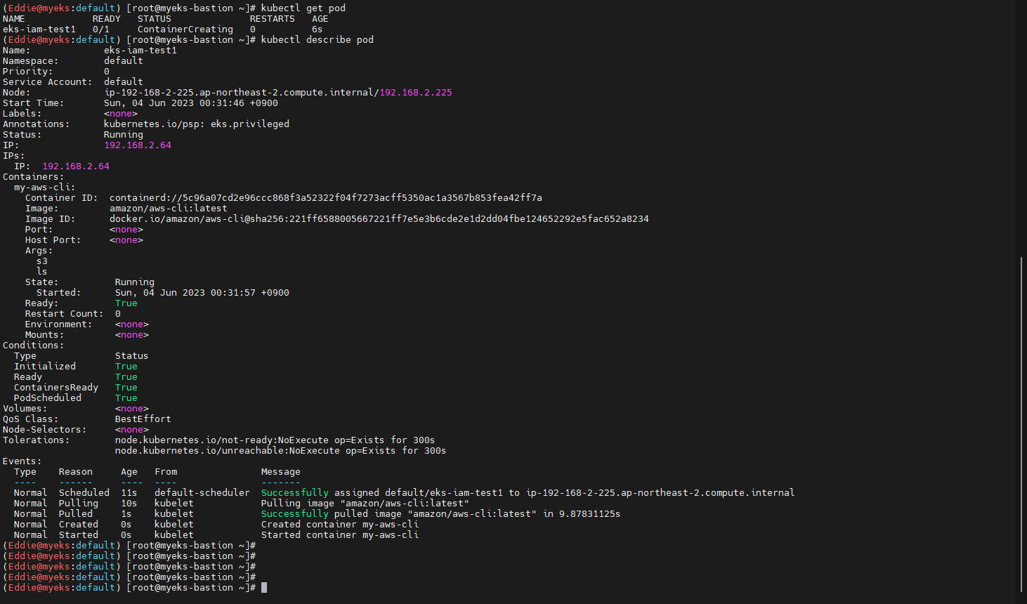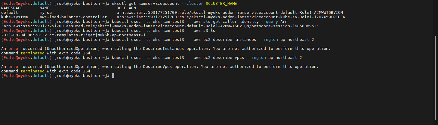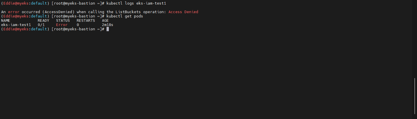 - pod 상태 확인 후, AWS S3에 Service 접근 시도 : Access Deny