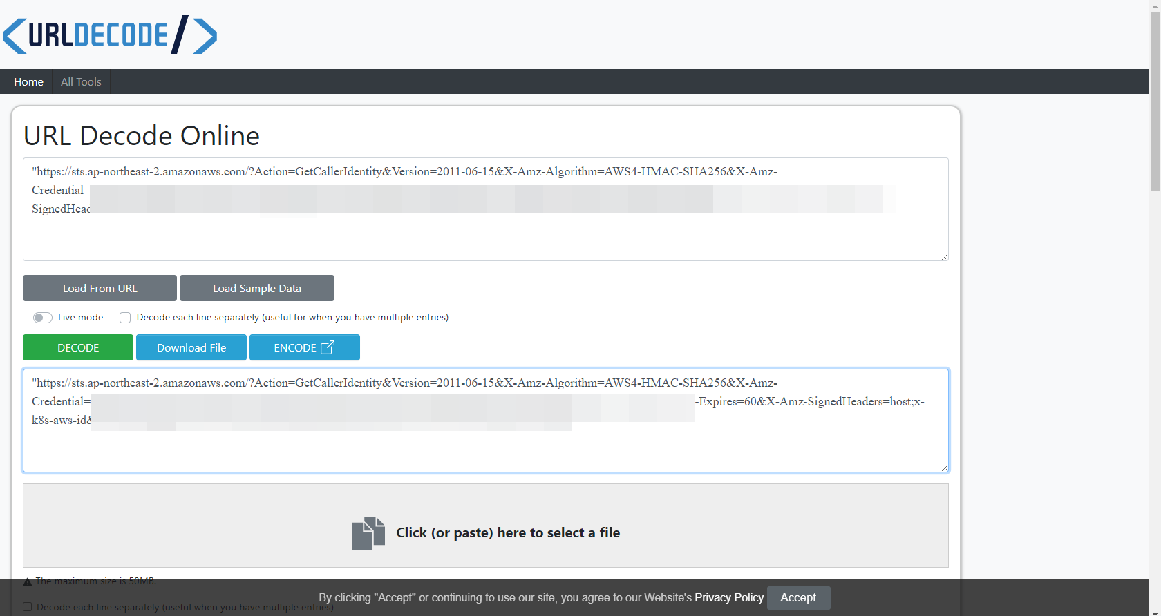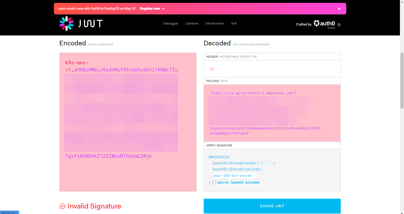 - 해당 토큰은 Pre-signed URL임으로 디코딩해서 내용 확인