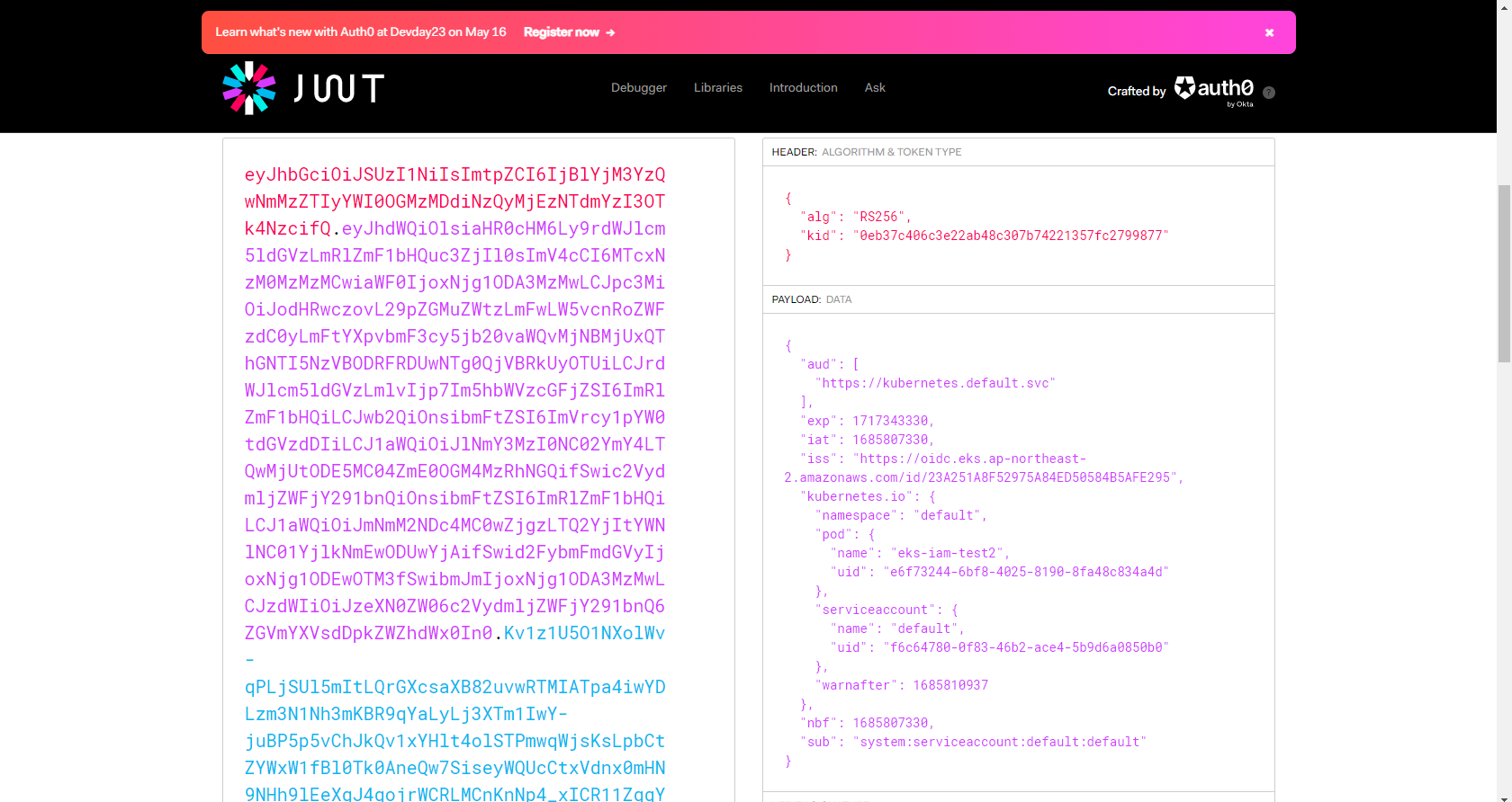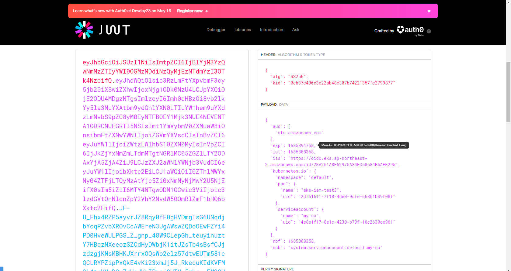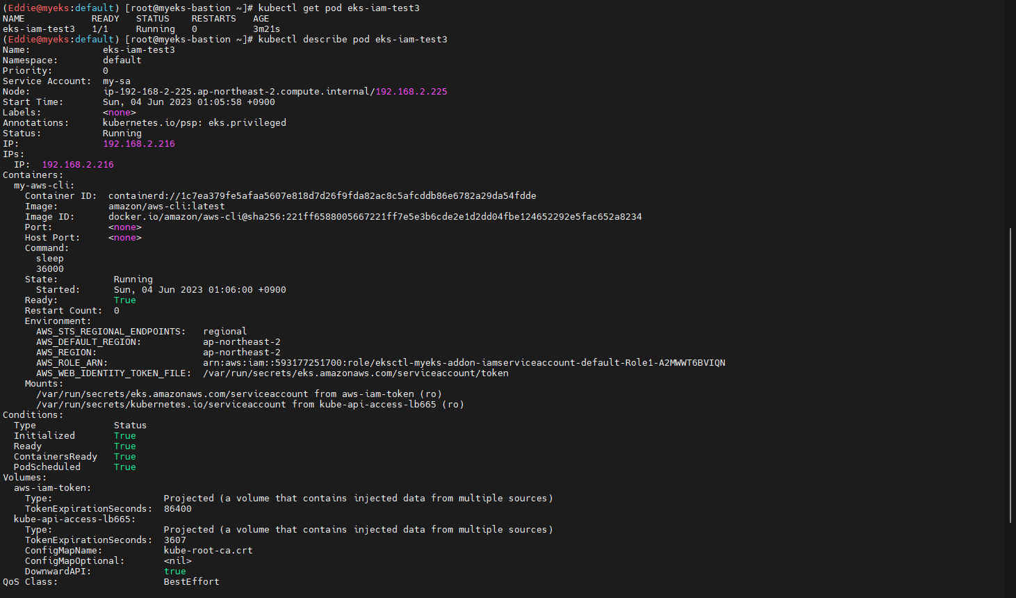 - IAM token 파일 확인 : Service Account가 my-sa