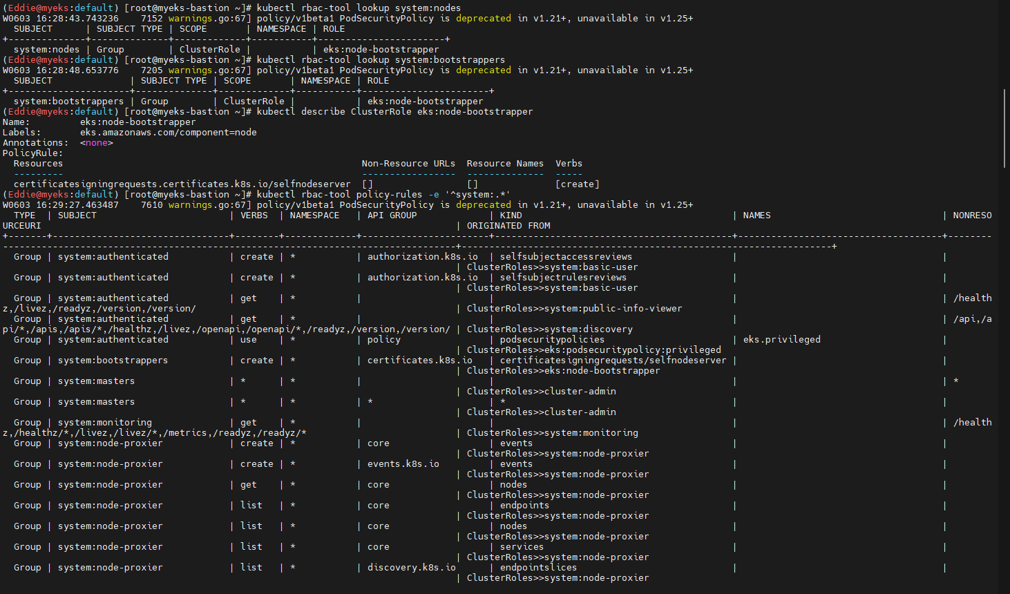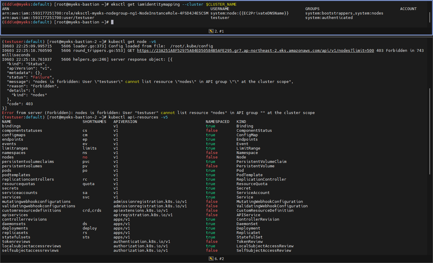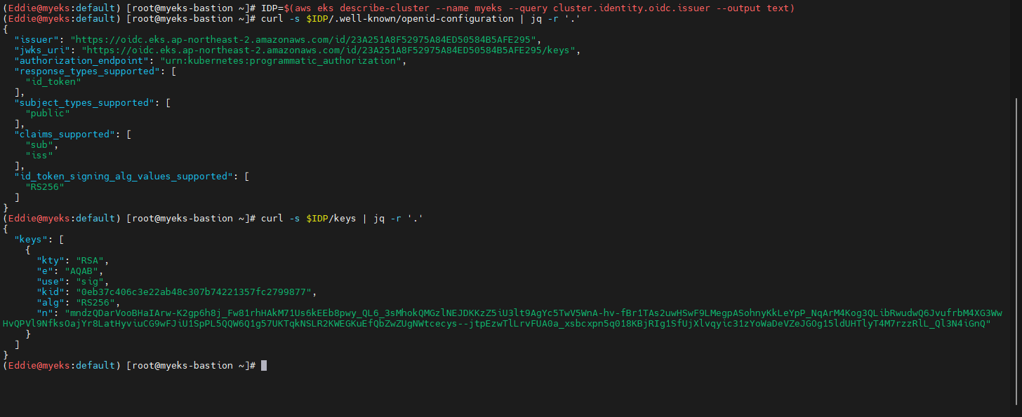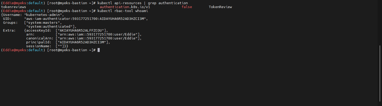 - 신규 생성한 계정으로 다른 Bastion에서 동일 쿼리 수행 확인 후 kubectl 확인