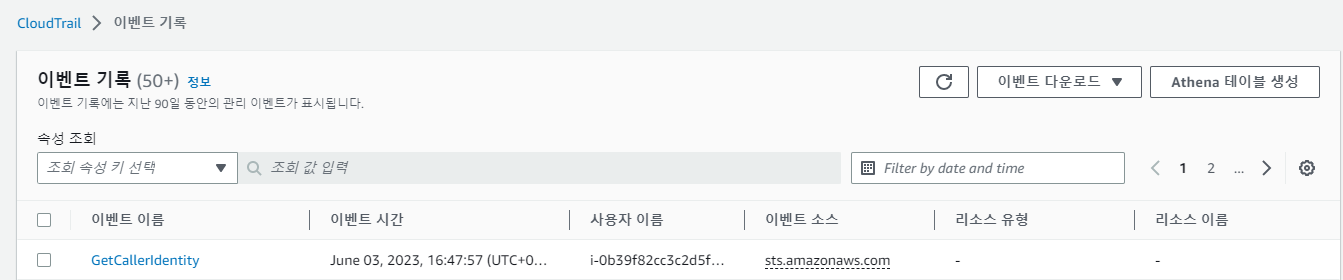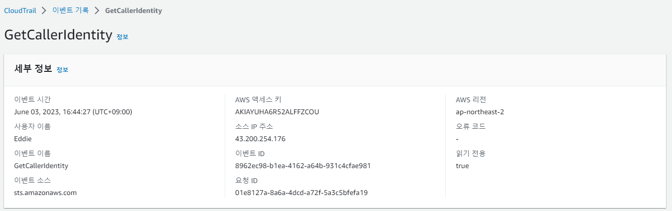 - GetCallerIdentity 관련 사항은 CloudTrail에서도 확인 가능