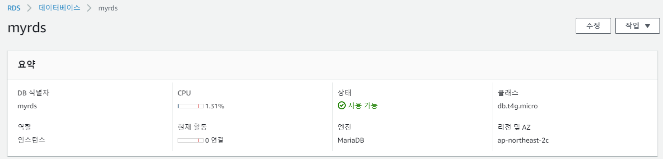 - RDS(MariaDB) 배포 : 테스트 목적의 퍼블릭 액세스