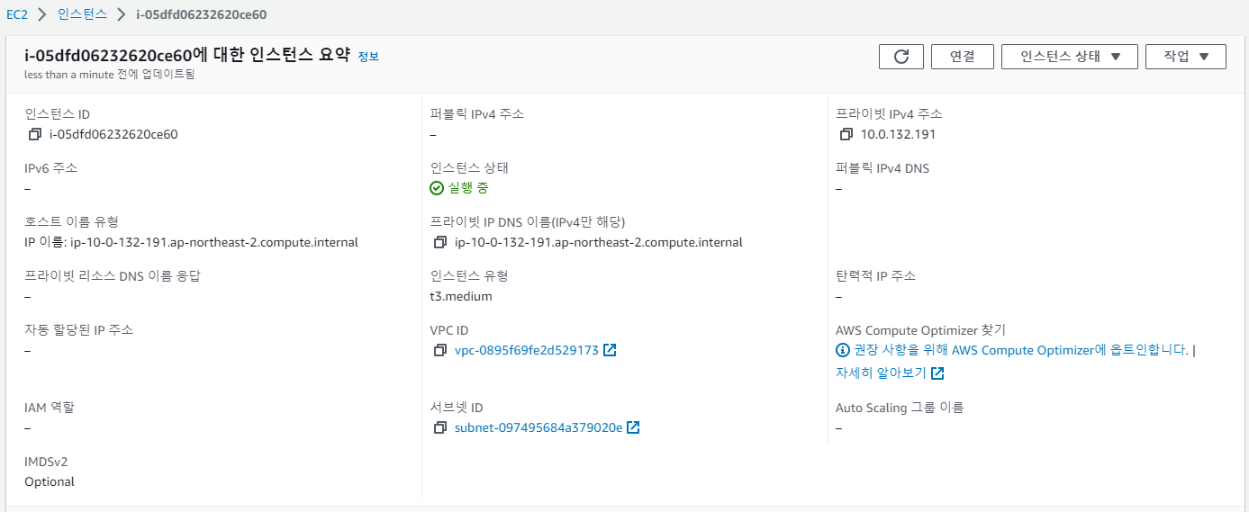 - SSH 터널링 구성 통해 외부에서 private 서브넷에 위치한 EC2 인스턴스 접근