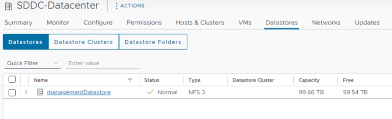 managementDatastore의 할당용량은 약 100TiB이며, 사용자가 사용할 수 있는 영역은 아니기에 큰 의미는 없습니다.