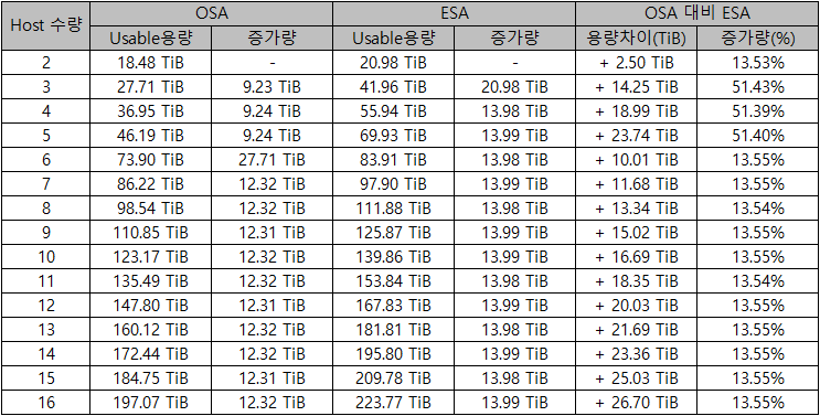 실질적으로 RAID와 Host 수에 따라 사용 가능한 공간은 달라질 수 있습니다만,