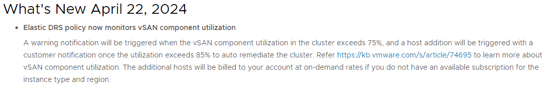 최신 버전의 SDDC에서 eDRS 정책의 상한선이 기존 80%에서 85%로 증가되었습니다.