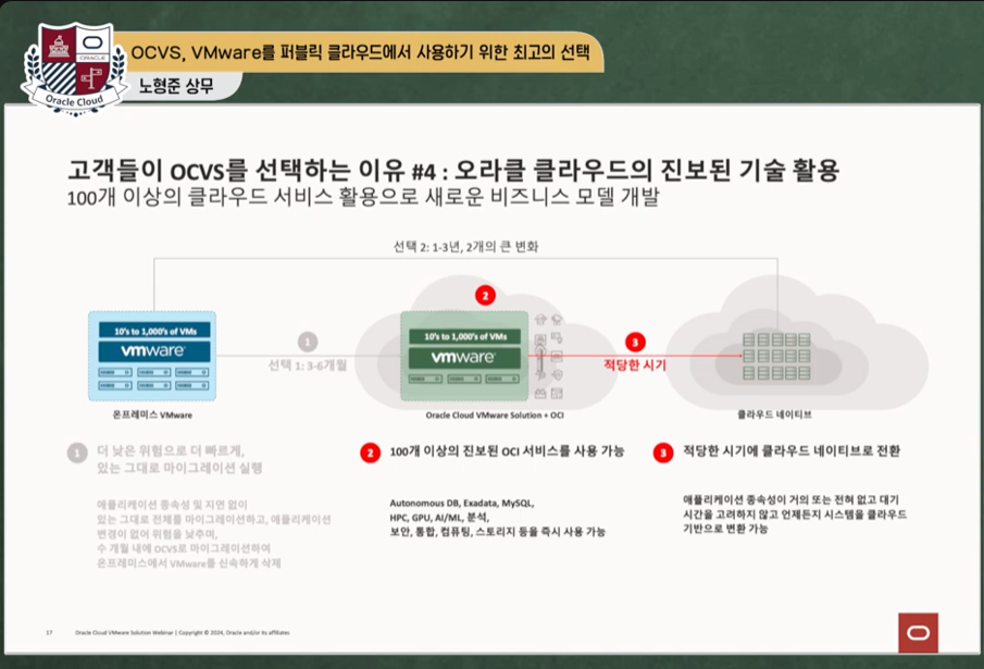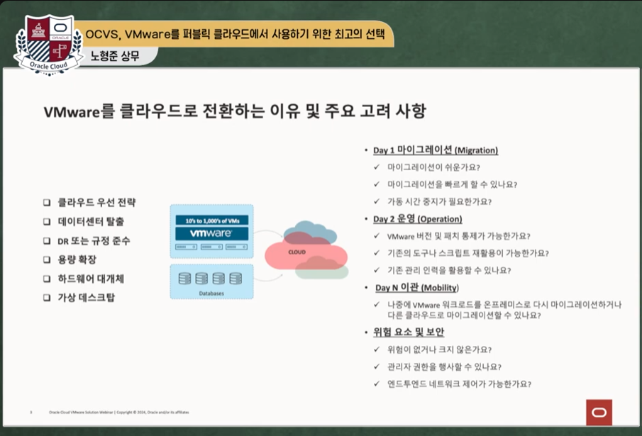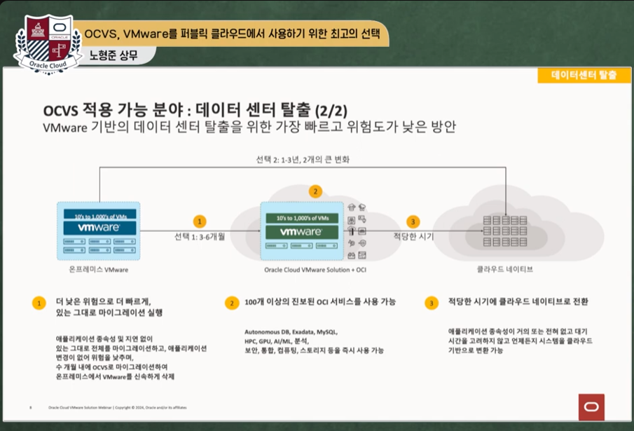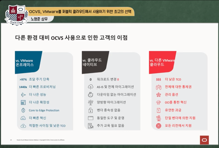 | [OCVS웨비나] 1교시. VMware와 헤어질 결심, 오라클과 함께 대안을 찾는 항해 (0) | 2024.05.20 |