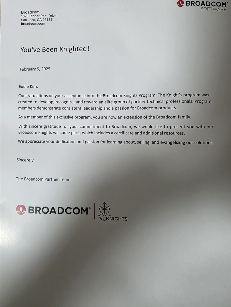 Broadcom Software에서 진행되던 Knights 프로그램에 VMware Knight 가 추가되었습니다.