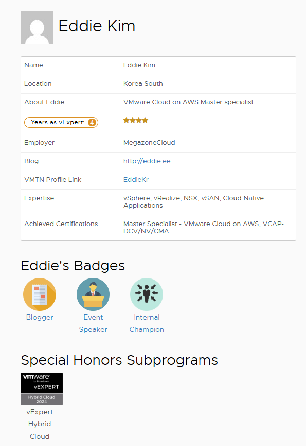 참고로, vExpert의 리스트는 vExpert Directory에서 확인할 수 있으며,