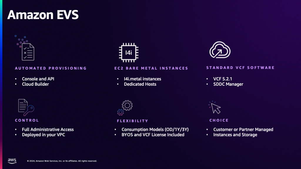 다만, EVS가 VCF의 License Mobility를 기반으로 EC2 베어메탈 인스턴스로 동작하다보니,