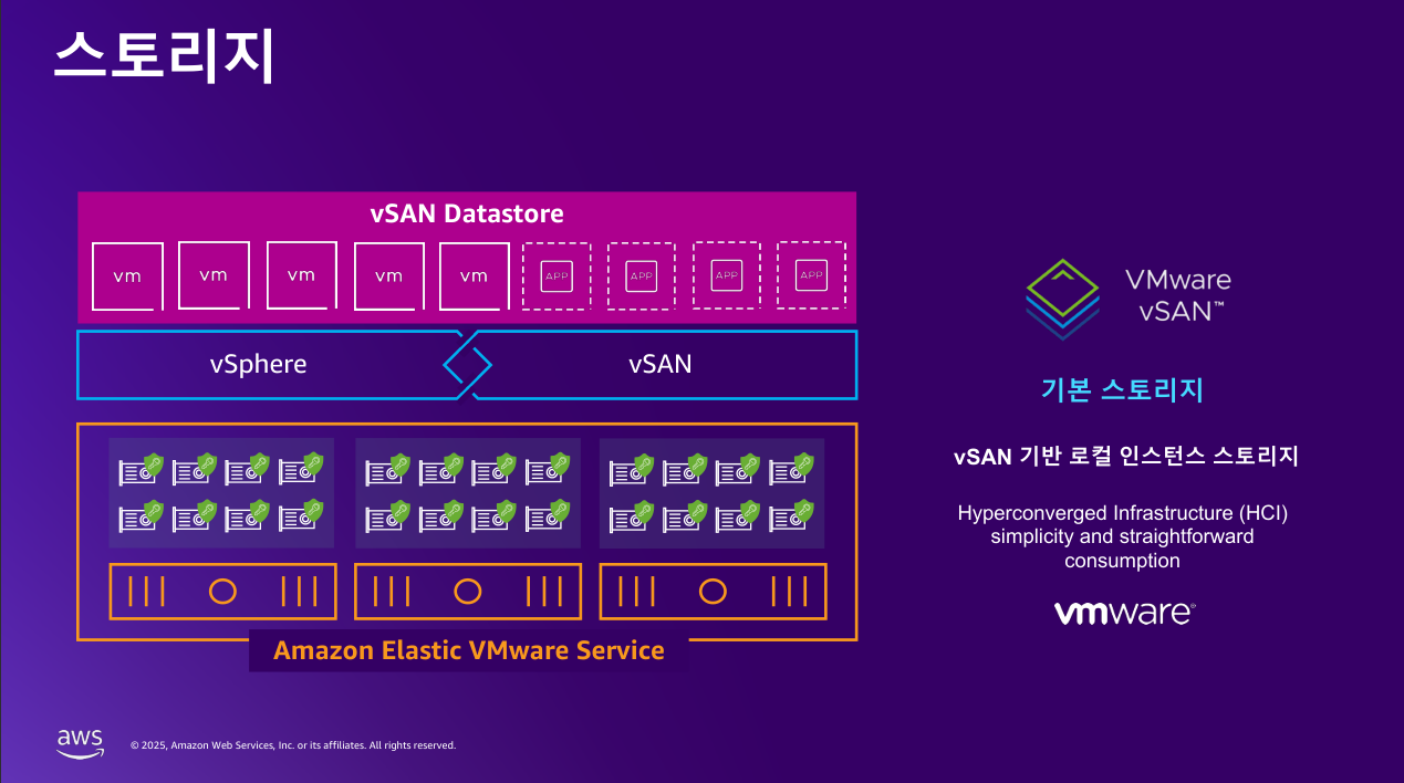 베어메탈 기반의 EC2 인스턴스에 연결된 8개의 NVMe All Flash 스토리지를 기반으로, vSAN 스토리지를 구현합니다.