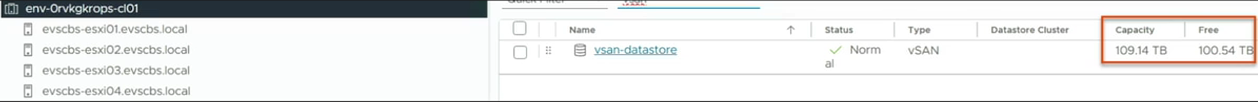 기본적으로 EVS는 vSAN을 내장형 스토리지로 사용하고 있어, 물리적 디스크 용량이 큰 모델이 우선 적용되고 있습니다.