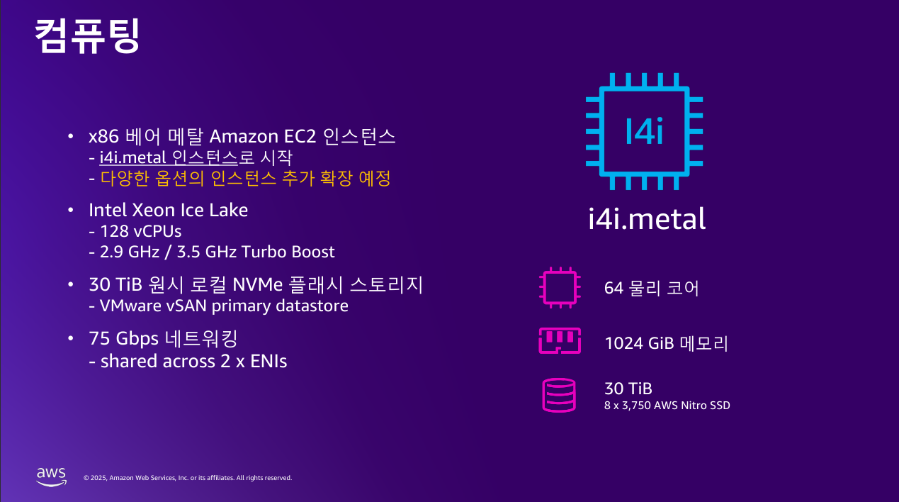 사용량과 데이터에 따라 실제 논리적 제공량은 달라질 수 있음으로, VMware Cloud on AWS와 동일한 Host를 사용하고 있어,