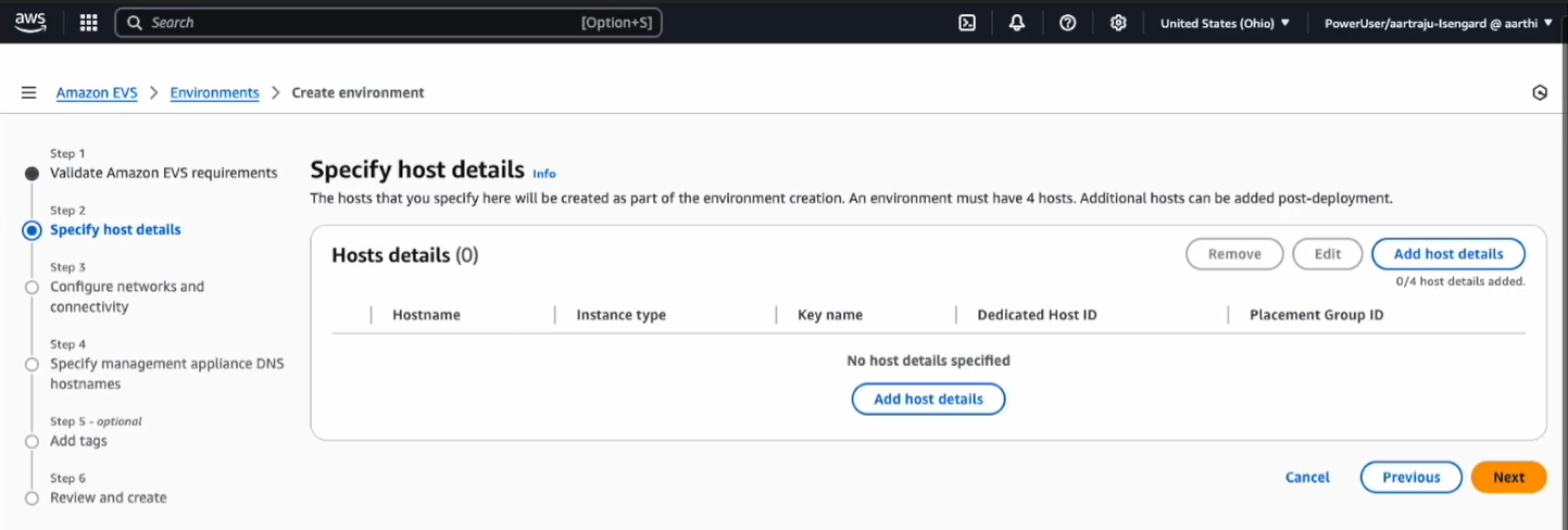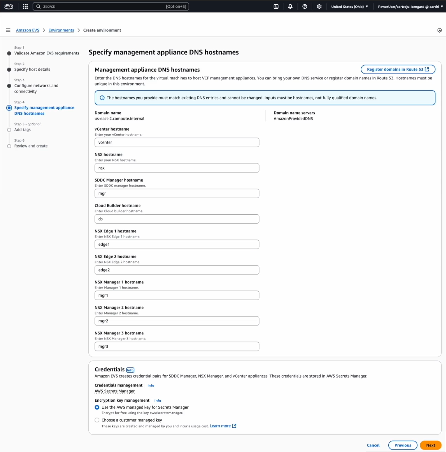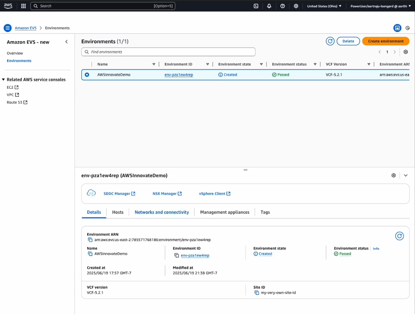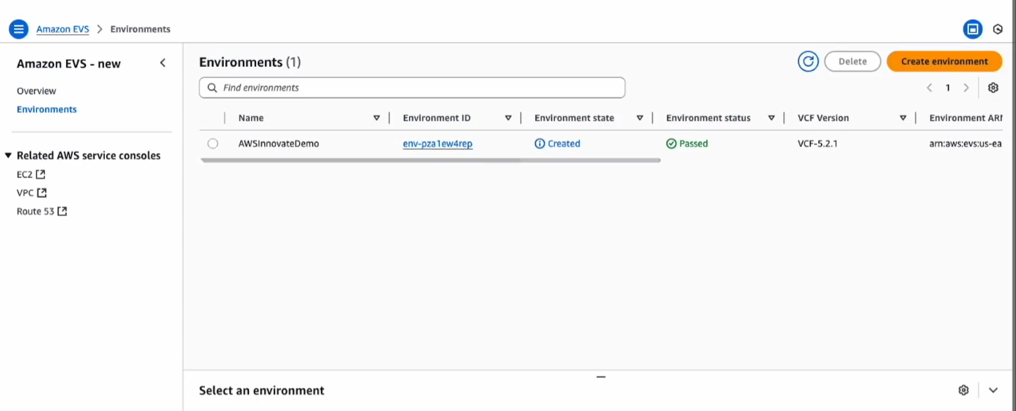 이제 본격적으로 AWS 콘솔을 통해 VCF 환경의 EVS를 배포하며, 전체 배포 과정은 약 3~4시간정도가 소요됩니다.