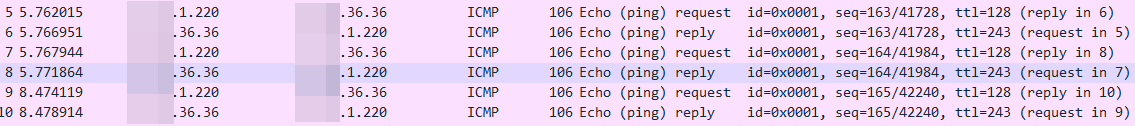 정상적인 결과라면 VM의 게이트웨이를 먼저 찍고, 그 다음 hop별로 시간을 확인시켜줘야 했지만,