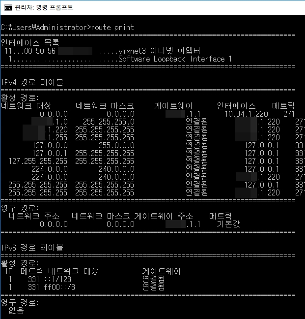 혹시나 하는 마음에 라우팅 테이블도 확인해 보았지만 특별한건 찾아볼 수 없었습니다.