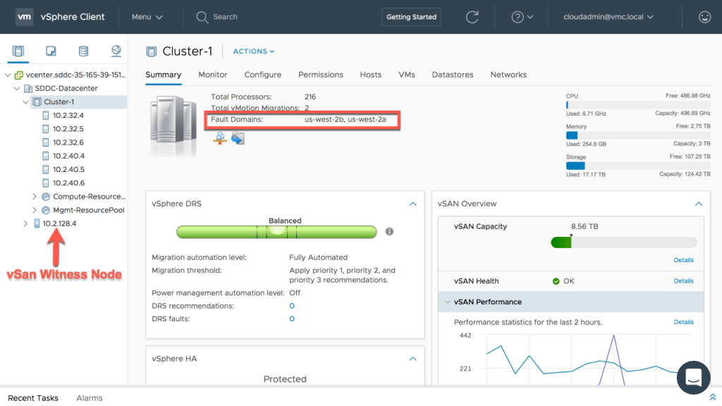 Witness는 설치시에는 눈에 보이지 않지만, SDDC가 구성된 후 vCenter에 접근하시면 확인하실 수 있으며,