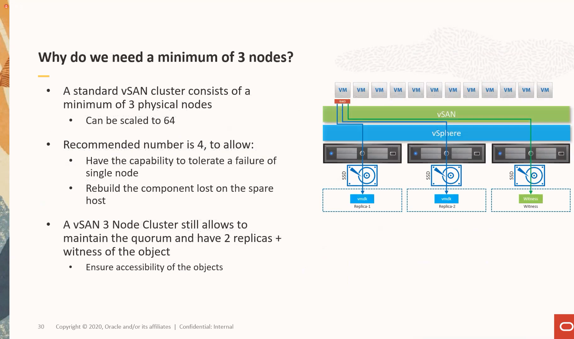 vSan 아키텍처상으로 최소 3대가 필요하며, 이 3대가 OCVS의 최소 노드인 3노드가 필요한 이유입니다.