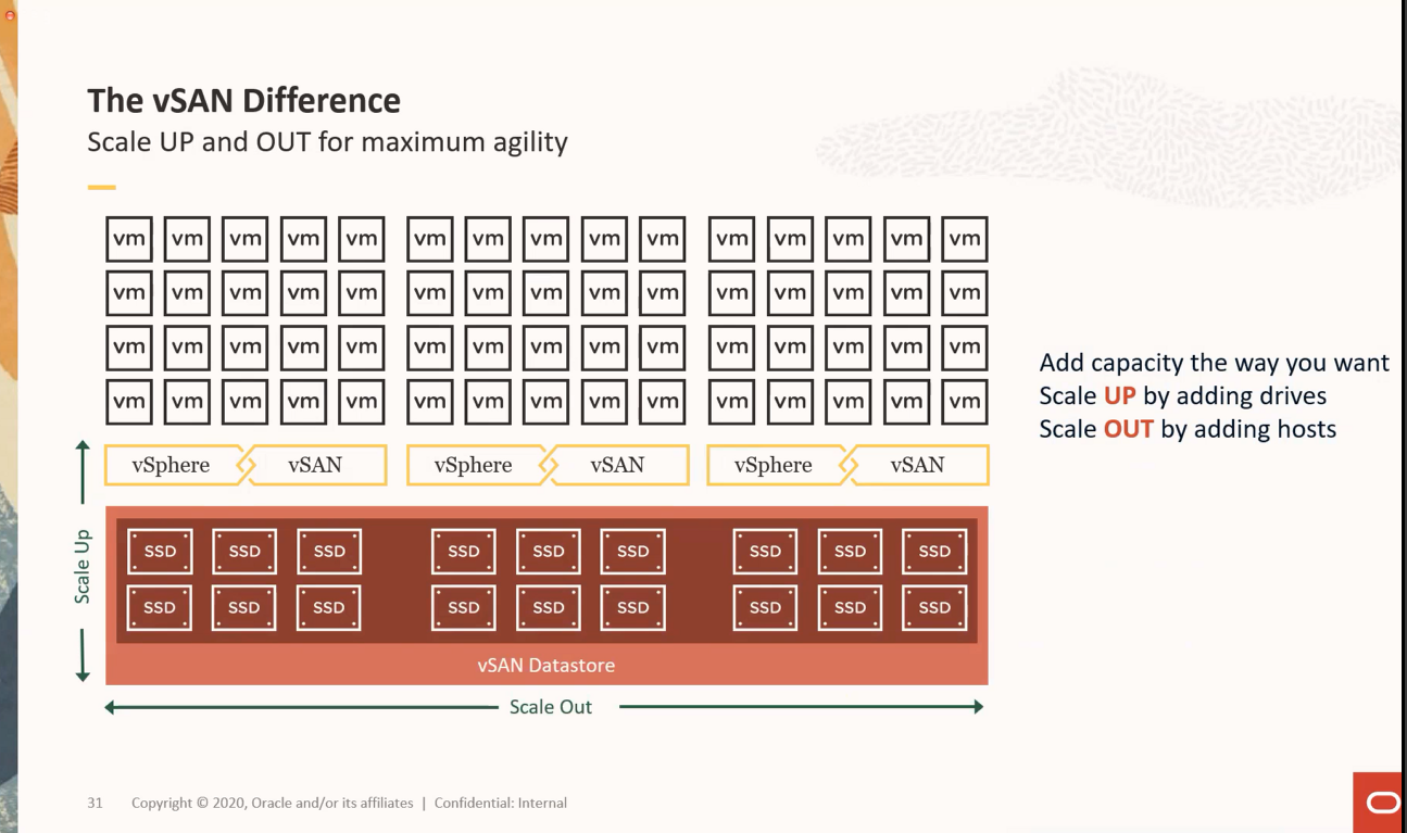 vSAN은 호스트에 Disk를 추가하여 Scale-up 방식의 확장, 노드를 추가하여 Scale-out 방식의 확장이 모두 가능합니다.