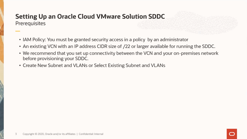 OVCS에 SDDC를 구성하기 위해서 4가지 사항에 대한 사전 준비가 필요합니다.