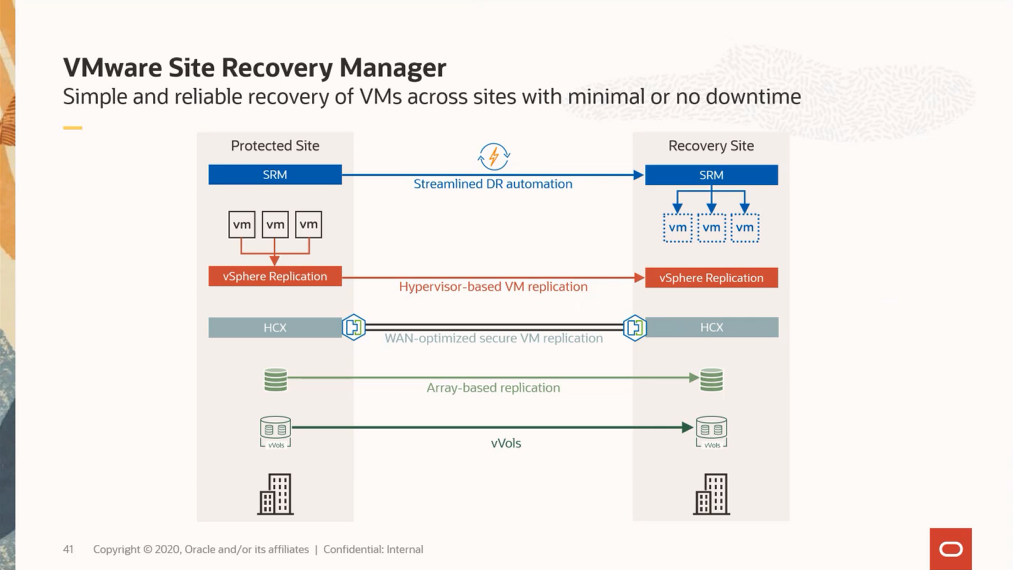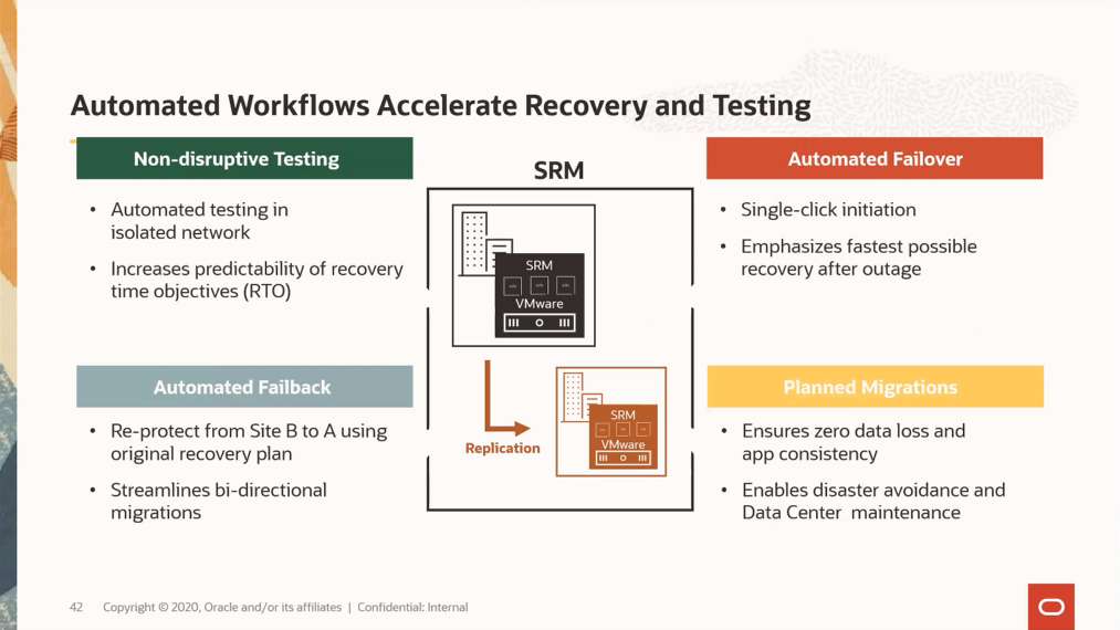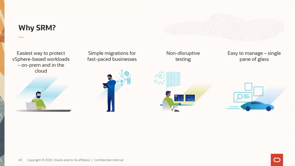 SRM은 On-premise나 VMware Cloud에서 VMware 기반의 워크로드를 보호하는 가장 손쉬운 방법입니다