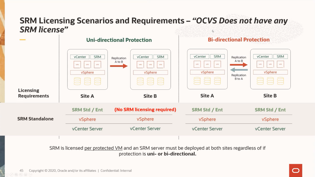 다만, SRM 라이센스는 OCVS에 기본으로 포함되어 있지 않으며, 고객사에서 VMware를 통해 별도 구매해야 합니다.