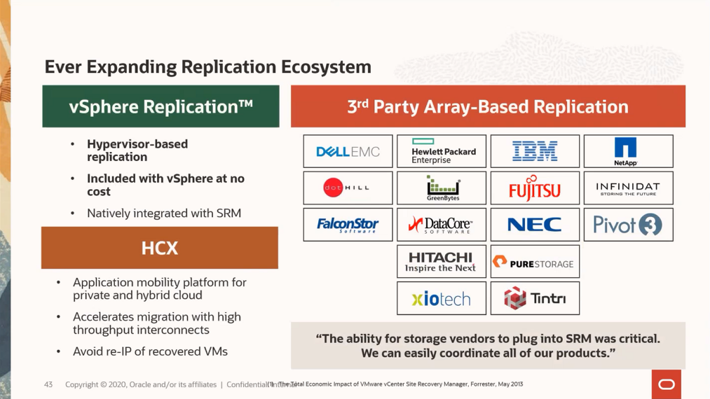 vSphere Replication은 기본 스토리지와 독립적으로 vSphere 플랫폼에 번들로 제공되고 있는