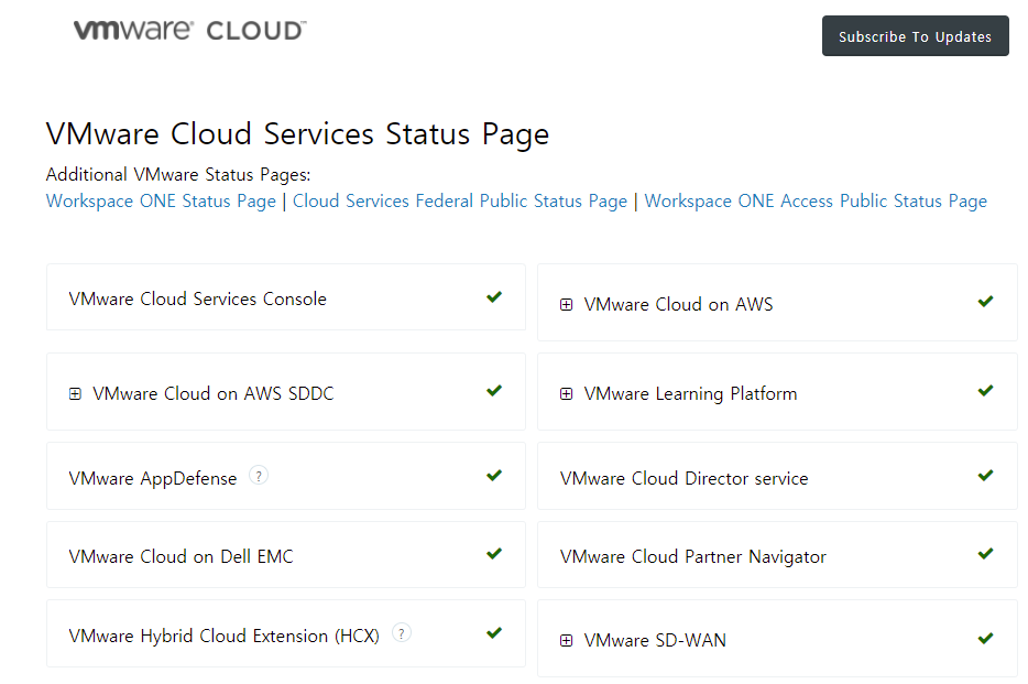 서비스가 비정상적으로 생각된다면, VMware Cloud 서비스 상태를 먼저 확인해보시기 바랍니다.