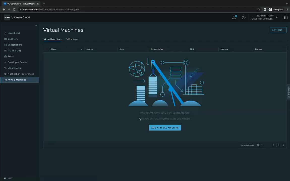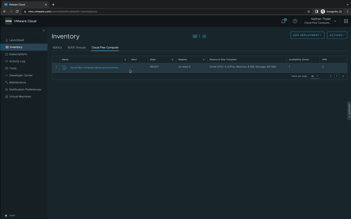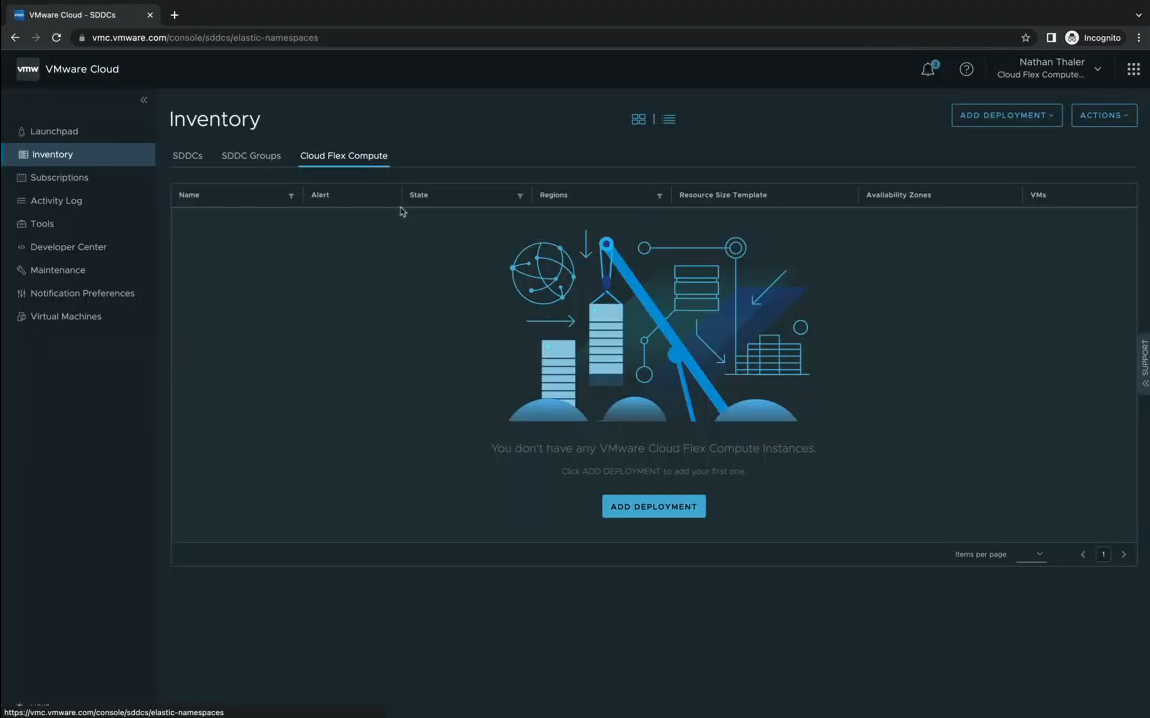 기존에는 SDDC와 SDDC Groups만 있던 Inventory에 Cloud Flex Compute라는 메뉴가 생겼습니다.