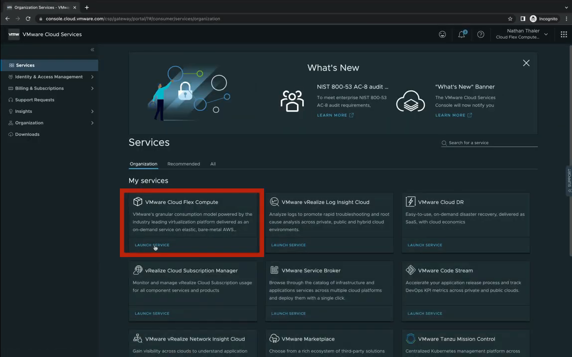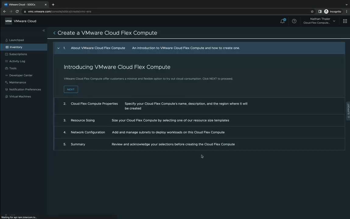 사용자가 VMware Cloud Service에 로그인하면 VMware Cloud Flex Compute라는 새로운 메뉴를 만날 수 있습니다.