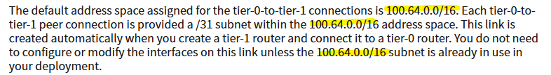 VMware의 NSX에서 사용되는 100.64 대역 사례