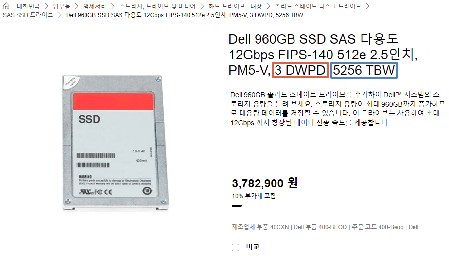 일반적으로 DWPD가 더 많이 사용되기는 하나, 여전히 TBW로 표현하는 제조사도 있습니다.