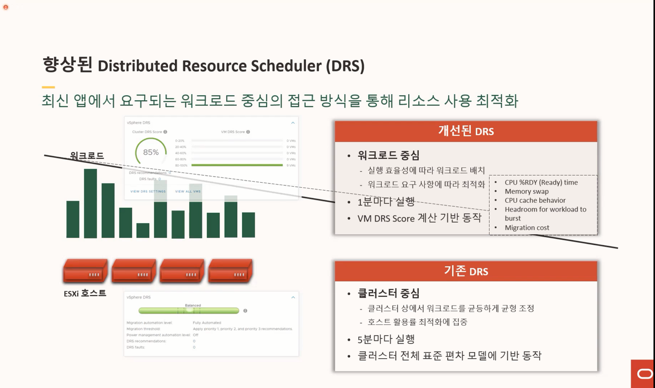 특정 ESXi 호스트에 자원 활용이 높을 경우 자동으로 가상머신을 이동하여 전체적인 성능을 향상시켜줍니다.